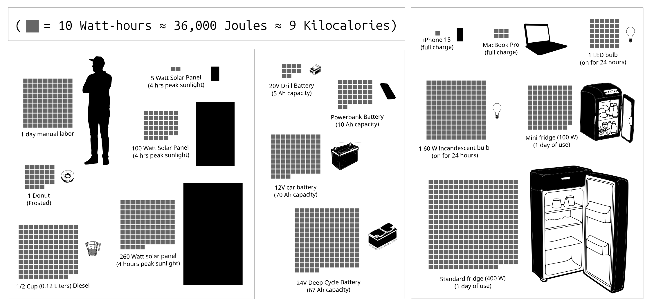 Diagram comparing energies for various forms of generation, storage, and applications. You can find the original poster here.